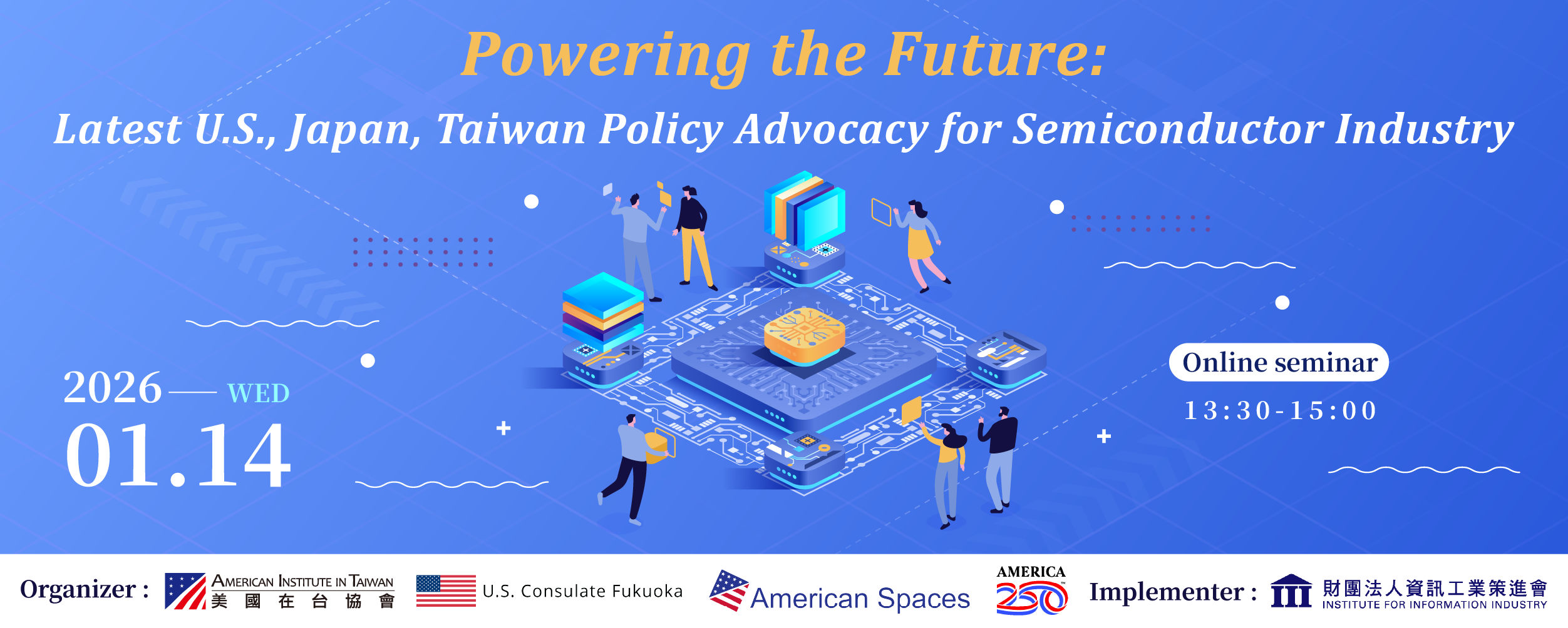【教學發展中心代發】財團法人資訊工業策進會於中華民國115年1月14日 (三)合作辦理「賦能未來:美日臺半導體產業最新政策倡議」線上論壇,歡迎教師踴躍參加。