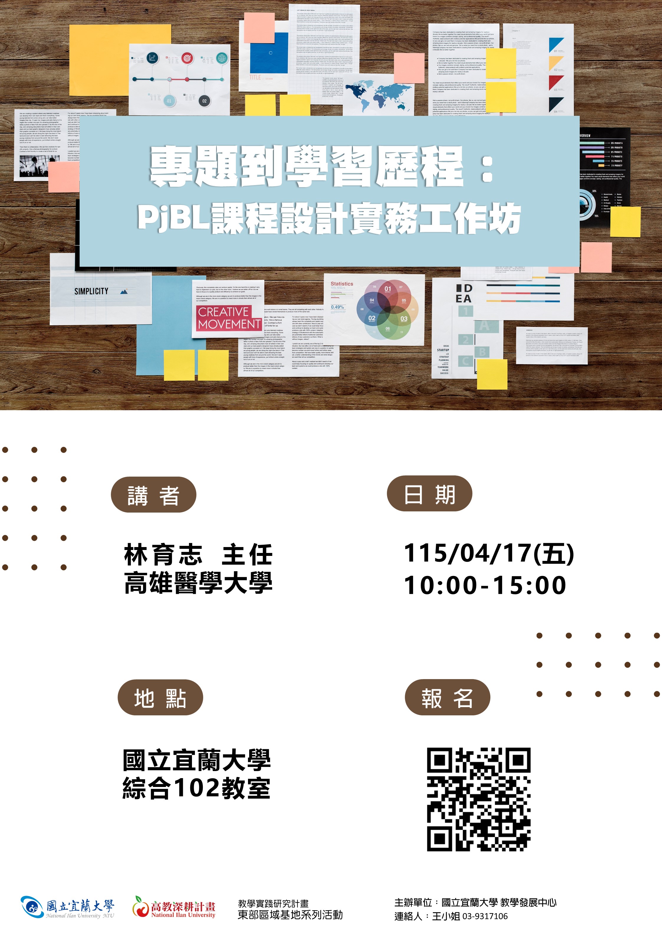 【教學發展中心代發】國立宜蘭大學辦理「專題到學習歷程:PjBL課程設計實務工作坊」,歡迎教師踴躍參加。